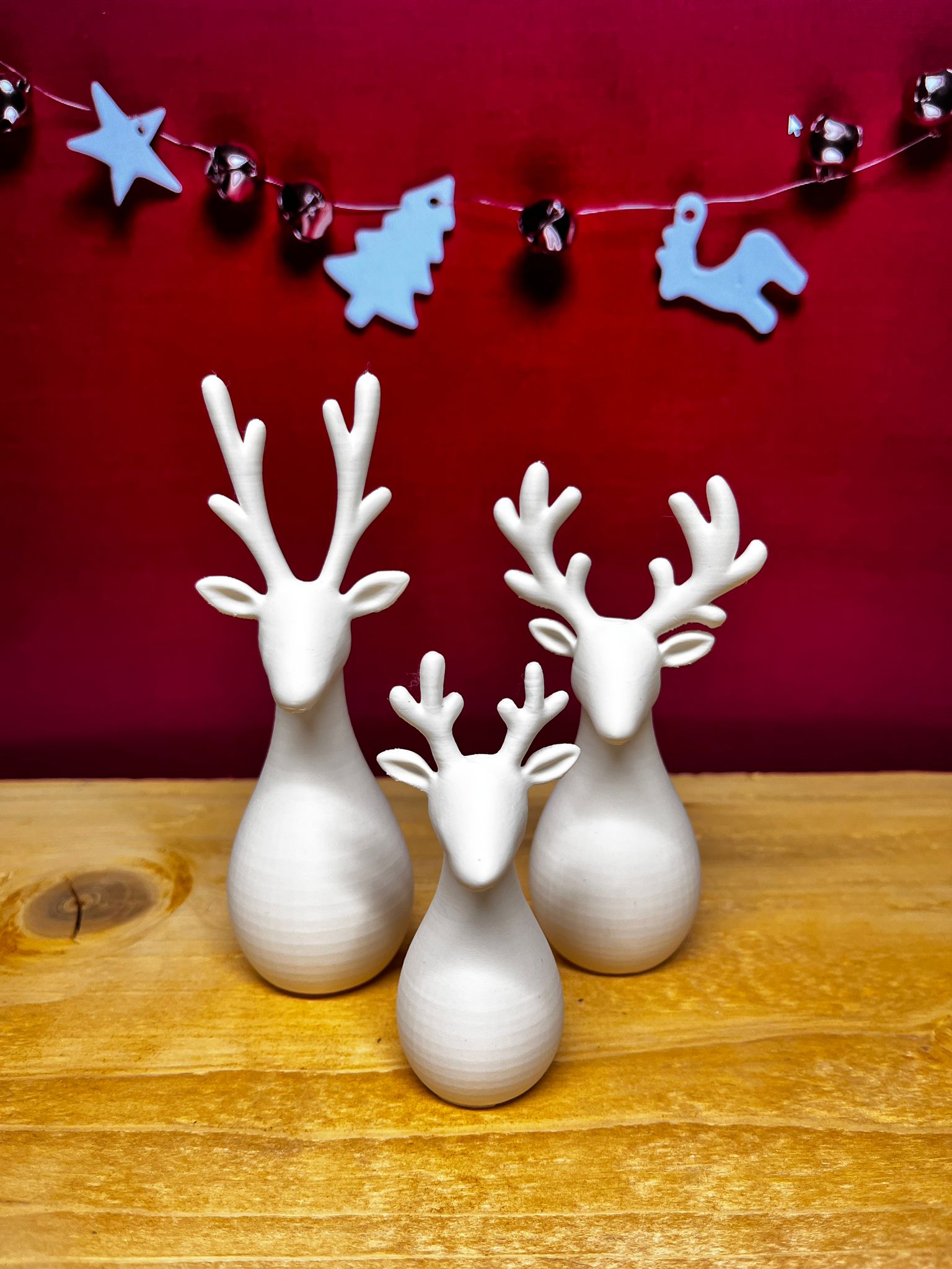 Breng warmte in je interieur met deze 3D-geprinte rendierfamilie, bestaande uit vader, moeder en kind. Minimalistisch en modern design dat past in elk kerstinterieur. Perfect als subtiele decoratie of als betekenisvol cadeau.