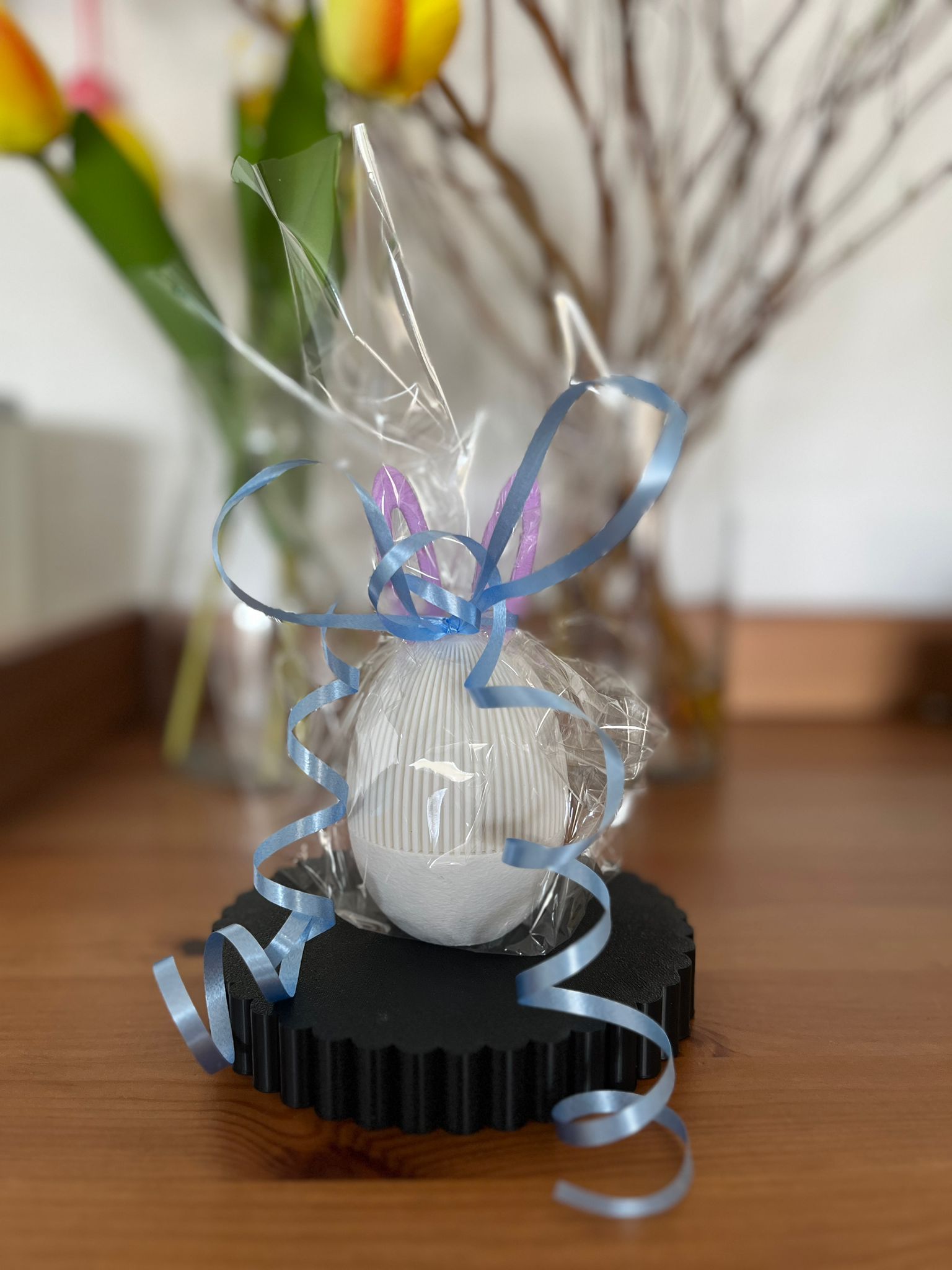 Dit paasei met oren is een speelse en moderne decoratie die perfect past bij de paassfeer. Het strakke ontwerp met een subtiele knipoog maakt dit item een leuke blikvanger op tafel, in een kast of op de vensterbank. Minimalistisch, maar toch vrolijk.