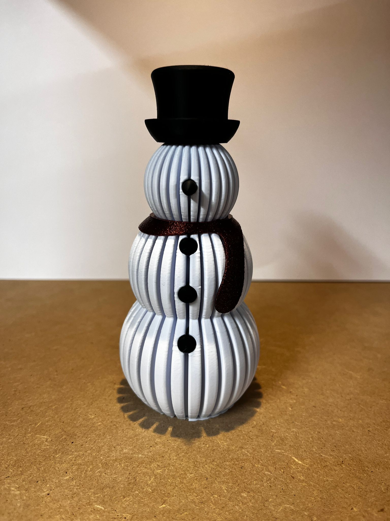 • De binnenkant van de sneeuwpop is hol, je kan er onderin een waxine LED lampje in doen zodat de sneeuwpop licht geeft